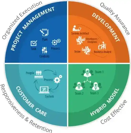 AllianceTek achieves the highest return on investment through a three-tiered Hybrid Model: clients on Tier 1, a team based in the United States for analysis and design Tier 2, and a team based offshore with a variety of expertise on Tier 3, which guarantees cost-effectiveness, project management, and expedited collaboration for high-quality solutions.