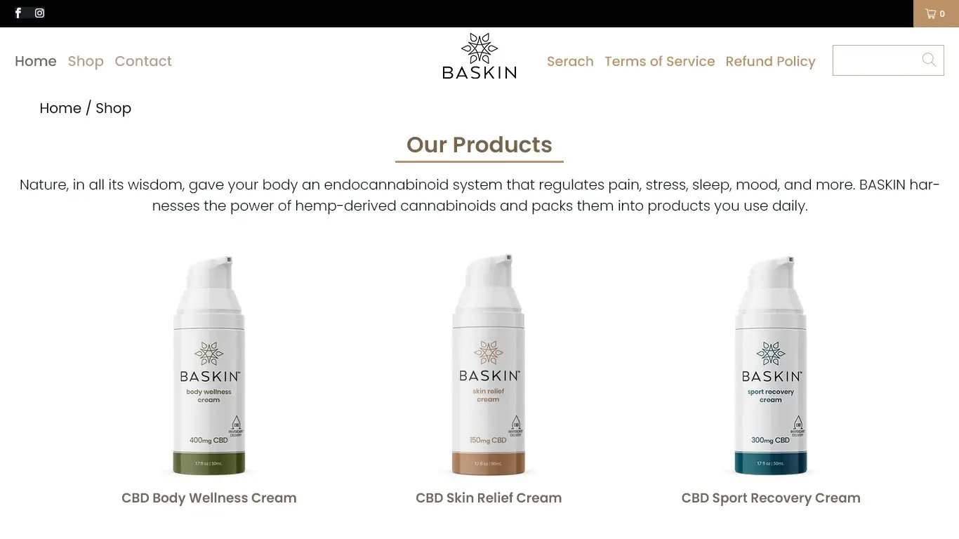 The shop section of the website provides both a quick view of all the products as well as a detailed view of ingredients and sizes when you click on them. The shop includes all kinds of products from wellness creams and skin relief creams to recovery creams and combos. It also includes a search button that allows you to search for a product directly without scrolling through the whole page.