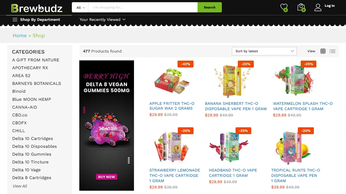 This budding platform is a one-stop destination for shopping various products containing extracts from Delta 8, Delta 9, HHC and more. The website has over 30 online shops and over 40 brands to choose from, each of which has a dedicated section of its own.