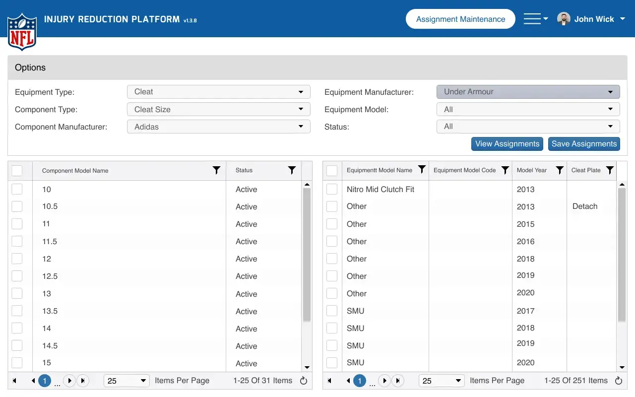 For the Injury Reduction Platform, the client wanted integration of new modules into an existing legacy system, facilitation of the integration of information from many sources, and simplification of the complex logic behind managing equipment, materials, and the relationships between them.