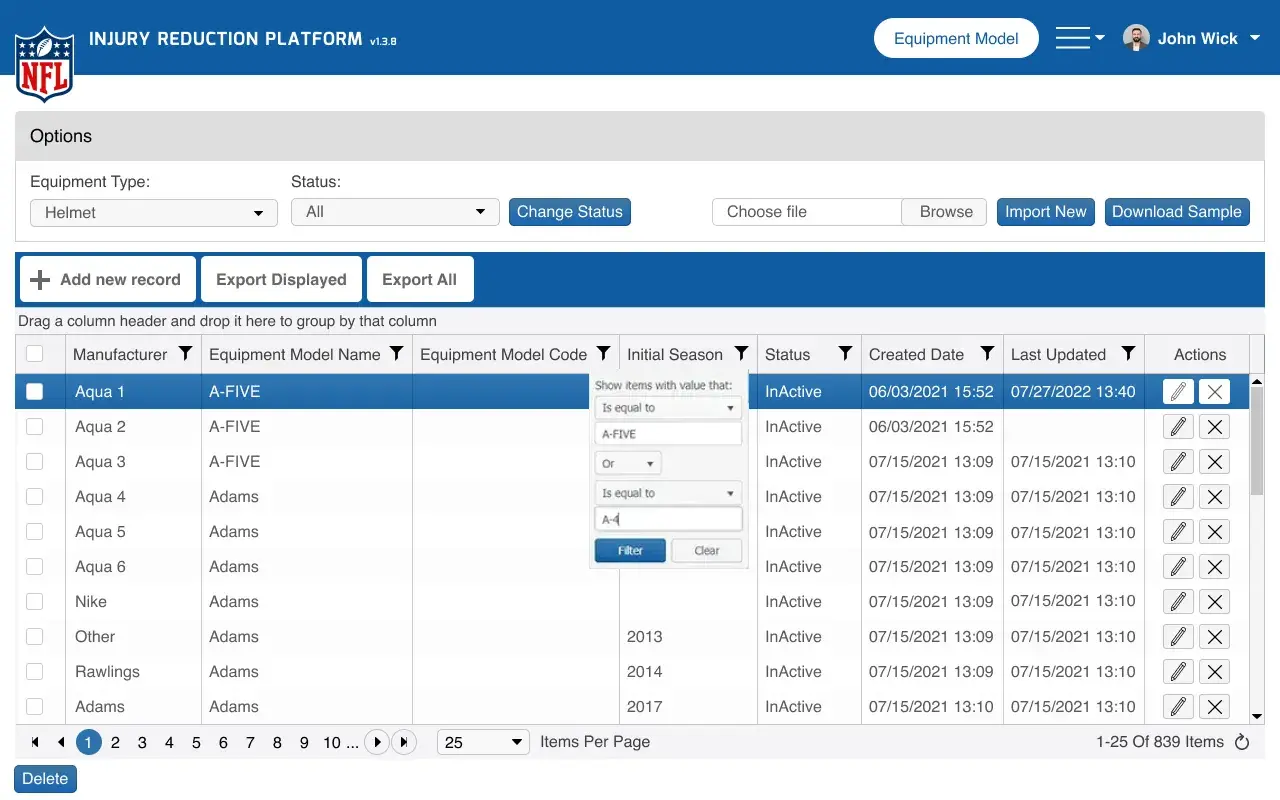 Members of the Injury Reduction Platform could now keep tabs on injuries and their associated equipment via the portal, which provided both in-depth analysis and simple reporting.