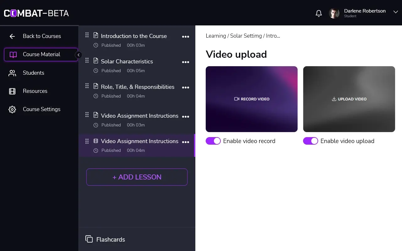 Included various other features such as video/GIF integration, interactive charts, text editor, dynamic notification, live video recording, and time-based questions and answers while recording the video submission on the student’s end.