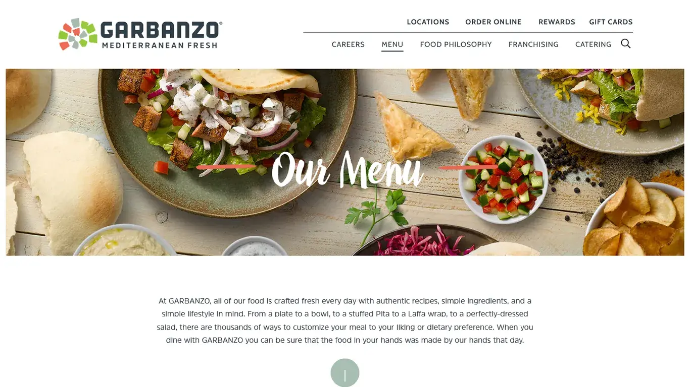 A detailed website that coordinates online food ordering with information about food items. This Mediterranean online food franchise provides all there is about Mediterranean food options, including food philosophy, nutritional information, and allergen information. The website also includes rewards and gift card sections that update the user about upcoming discounts and rewards.