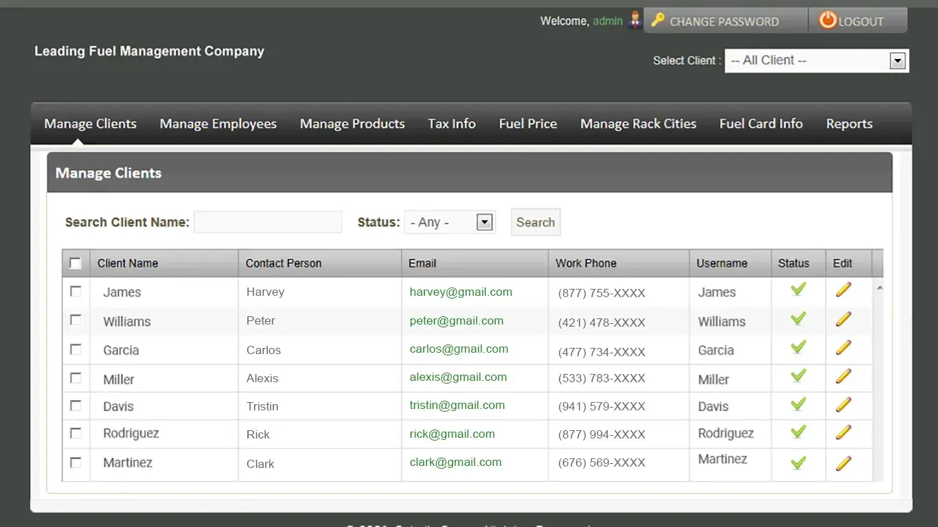 AllianceTek developed and implemented an Intranet application with features like Client and employees Management, fuel prices and order management, tax info, fuel card transactions management, automated alerts and BI reporting that was much simpler to use and seamlessly integrating with their existing operations.