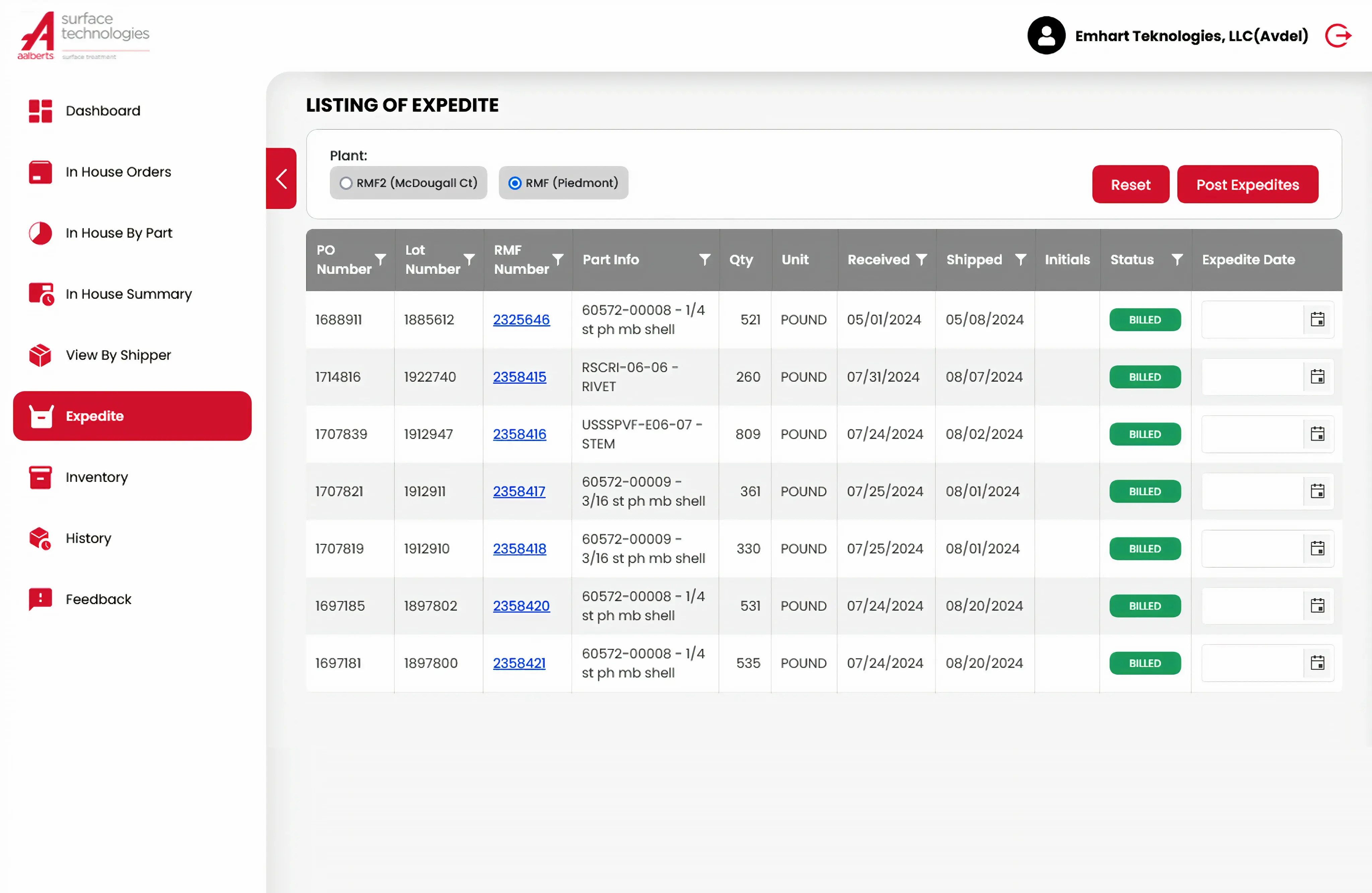 This project was to design a client portal where the client can view orders, request expedited and view data of different plants. The brief given to AllianceTek was to revamp the user interface of the platform and the underlying technology to make it easy to navigate, more functional and scalable. Moreover, the client also desired periodical updates from the ERP system, in future AllianceTek will incorporate new features on the invoice, and automation of work orders creation.